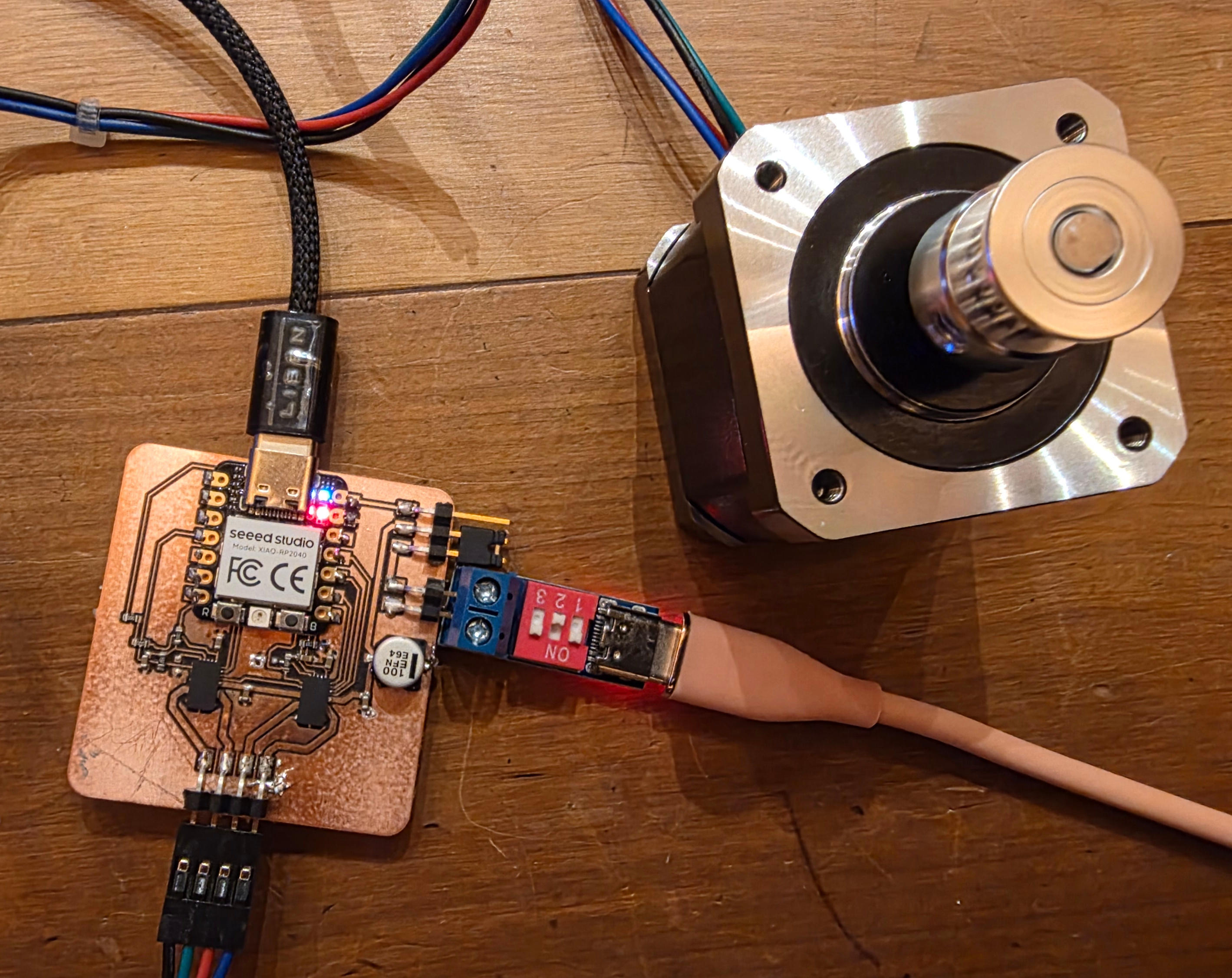 electrical safety ~1 mA: OK ~10 mA: shock, contraction ~100 mA: fibrillation body: M ohm external, k ohm internal dielectric breakdown: ~kV/mm supply capacitors inductive flyback polarity protection diode, MOSFET level shift MOSFET connector polarization, orientation circuit protection power wire gauge USB charger hub battery module meter power supply bench switching, linear, regulated supercapacitor LiPo battery charge controller storage wireless current measurement in-line meter supply regulation sense resistor magnetic field inductance LED current limiting hello.button-blink.C3 board components traces interior hello.button-blink.C3.ino hello.button-blink.C3.py video PWM hello.fade.C3.py video Charlieplexing hello.array.44 board components traces traces+exterior interior C makefile video hello.array.44.2 board components bottom vias top top+exterior interior C makefile video RGB LED pixels lights wires NeoPixel/WS2812B/SK6812 hello.WS2812B board components top interior hello.WS2812B.RP2040.py video Arduino Micropython library 3 in 1 hello.RGB.45 board components traces traces+exterior interior C makefile video LEDs diode drop, series-parallel MOSFET N (5.2A, 30V), P, N (90A, 30V) floating gates, gate resistors dissipation, Rds, switching BJT, BiCMOS, IGBT hello.LEDs.t412 board components traces traces+exterior interior hello.LEDs.t412.ino video thermal runaway eye safety displays LCD HD44780 library hello.LCD.44 board components traces traces+exterior interior C makefile video I2C PCF8574 library hello.I2C.t1614 hello.LCD.I2C.ino video OLED SSD1306 hello.SSD1306.RP2040 board components top holes interior hello.SSD1306.RP2040.py ssd1306.py video library scripts hello.SSD1306.45 board components traces traces+exterior interior C makefile video TFT ILI9341 library hello.ILI9341.SW.D21E board components traces traces+exterior interior video hello.ILI9341.HW.D21E board components top top+exterior bottom holes interior video ST7735 video E Ink modules Light Field plugin video video RS170, NTSC, PAL, SECAM, VGA 75 ohm impedance hello.video.44 board components traces traces+exterior interior C makefile video SPI TVout thinner client color DC motor H-bridge TB67H451AFNG,EL (3.5A, 44V) hello.TB67H451.RP2040 board components top interior hello.TB67H451.RP2040.ino hello.TB67H451.RP2040.py boot.py video hello.H-bridge.D11C board components traces traces+exterior interior hello.H-bridge.D11C.ino video torque, power, efficiency, gearing vibration heat speaker MP3 module library hello.DFR0299.RP2040 pro sch pcb board components top holes interior hello.DFR0299.ino video I2S MAX98357A library module hello.MAX98357A.RP2040 board components top holes interior hello.MAX98357A.RP2040.ino video PWM class D, library hello.TB67H451.RP2040.audio.ino hello.TB67H451.RP2040.audio.py boot.py video hello.TB67H451.RP2040.wave.py sample.py hello.py convert_byterray.py video hello.TB67H451.RP2040.wave.ino sample.ino sample.main.ino convert.py video hello.speaker.D11C board components traces traces+exterior interior hello.speaker.D11C.ino hello.speaker-registers.D11C.ino video solenoid servo motor 50 Hz ~1-2 ms PWM (dis)continuous rotation ATtiny412 hello.servo.t412 board components traces traces+exterior interior hello.servo.t412.ino hello.servo-registers.t412.ino video ATSAMD11C hello.servo-D11C board components traces traces+exterior interior hello.servo-registers.D11C.ino video ATtiny44 hello.servo.44 board components traces traces+exterior interior ZLDO1117 hello.servo.44.1 board components traces traces+exterior interior LM2940 C (hardware PWM) makefile C (two-channel, software PWM) makefile video brushless DC motor (BLDC) efficiency, density, reliability, noise inrunner, outrunner, pancake, fan, gimbal Kv (RPM/V) phases/rotation (6 typical) drive waveform open-loop, closed-loop control back EMF (BEMF) sensing ~1 (fan), 10 (drone), 100 (skateboard), 1000 (car) A,$ triple half-bridge A4949 (1.8A, 18V) hello.A4949.RP2040 pro sch pcb board components traces interior hello.A4949.RP2040.py video project electronic speed controller (ESC) hello.ESC.44 board components traces traces+exterior interior C makefile video firmware servo PWM power input, output initialization, calibration stepper motor types wire identification holding torque step size (1.8 degrees typical) step current, duration full, half, microstepping field oriented control step and direction DRV8428 (1A, 33V) hello.DRV8428-D11C board components traces traces+exterior holes interior hello.DRV8428-D11C.ino video hello.DRV8428-D11C-NEMA17 board components traces traces+exterior holes interior code video H-bridge dual DRV8421ADFUR (2A, 18V) hello.DRV8421ADFUR.RP2040 pro sch pcb board components traces interior hello.DRV8421A.RP2040.stepper.py video single DRV8251ADDAR (4.1A, 48V) hello.DRV8251A.RP2040 pro sch pcb board components traces interior hello.DRV8251A.RP2040.ramp.py video hello.DRV8251A.RP2040.stepper.ino video DRV8263 (29A, 65V) hello.DRV8263H.RP2040 pro sch pcb board components traces interior stencil TB67H451AFNG,EL hello.stepper.bipolar.D11C board components top top+exterior bottom holes interior hello.stepper.bipolar.D11C.ino video driver electro-permanent electrostatic motor control Allegro TI Trinamic Pololu motion control solid state relay AC vs DC IC hockey puck wiring voltage drop: ~V safety: switch hot side US: black (red,blue) = hot, white = neutral, green(-yellow) = ground EU: brown (black,gray) = hot, blue = neutral, green-yellow = ground switched outlet shape memory piezo polymer artificial muscle fishing line conducting thread actuator LCE soft inflatable pneumatics hydraulics Lingdong group assignment: • measure the power consumption of an output device individual assignment: • add an output device to a microcontroller board you've designed, and program it to do something